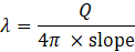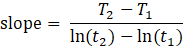 In the middle section, the temperature only depends on the heater power and the thermal conductivity. The slope can be determined by using the following formula: