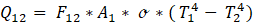 With: = radiative heat flux from body 1 to 2. [W]