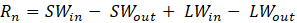 Net radiometers are used to measure the net radiation. The net radiation is the difference between incoming and outgoing radiation of a surface. This radiation consists of shortwave and longwave radiation. The net radiation of a surface can be calculated with the following expression: